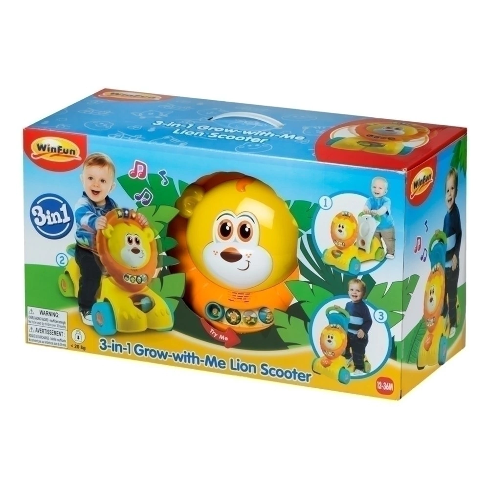 Incluye efectos de sonido y melodías alegres. Funciona con 2 pilas AA (no incluidas). Peso máximo del niño 20 Kg.