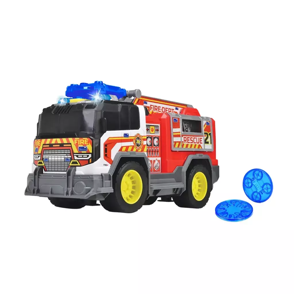 Jugá con el camión bomberos de 30 cm con disparador de discos, escalera plegable y luz y sonido. Perfecto para niños a partir de 3 años que quieren vivir emocionantes misiones de rescate y desarrollar habilidades mientras juegan.