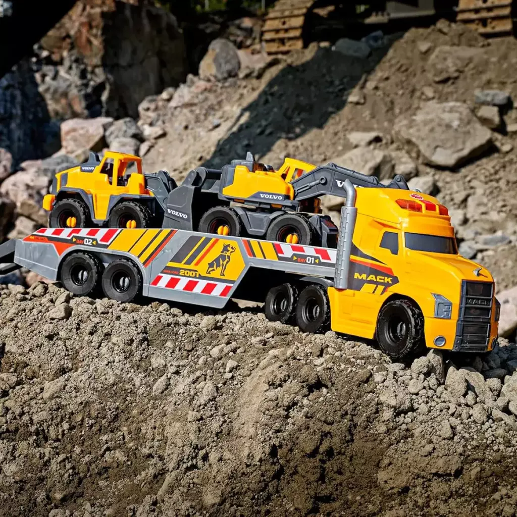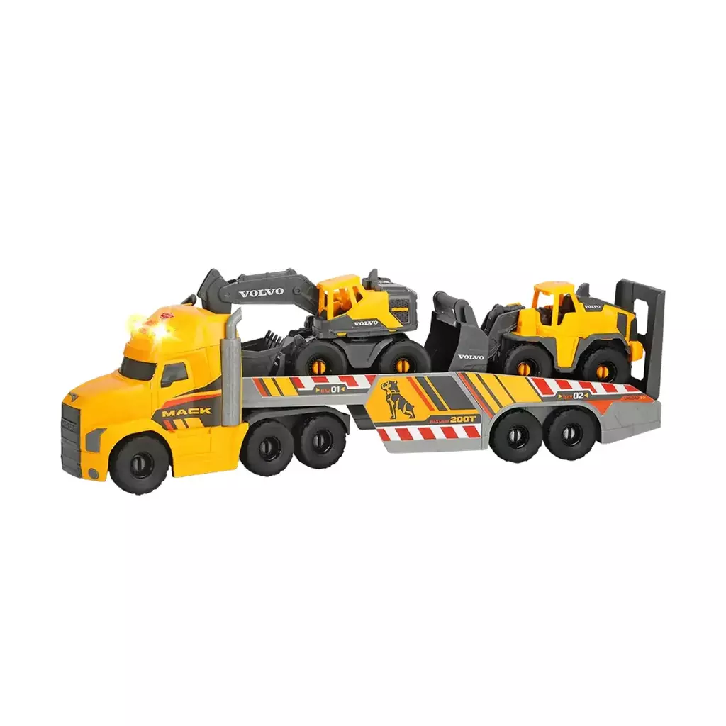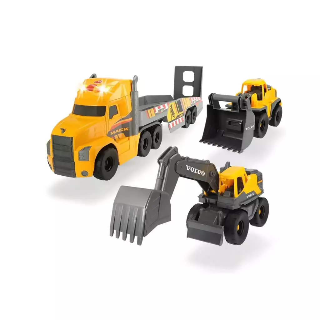 Jugá con el camión de carga pesada Dickie Toys de 70 cm, con remolque y vehículos de construcción incluidos: excavadora y cargadora de ruedas. Perfecto para niños a partir de 3 años que aman construir y explorar.