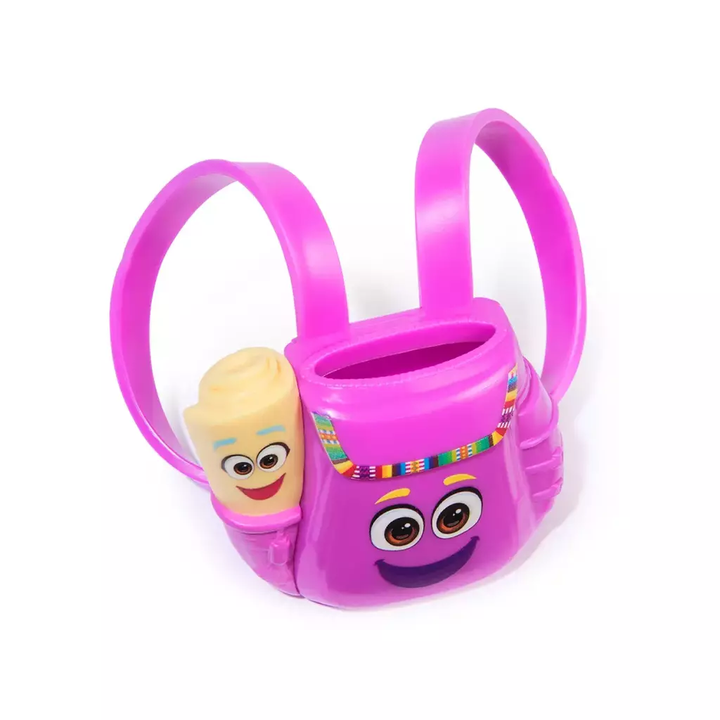 Además, viene con accesorios removibles como zapatos, vincha, pulsera y su clásica Mochila morada, lista para acompañarte en cada aventura. Su cabello suave y realista es perfecto para peinar y crear peinados divertidos.