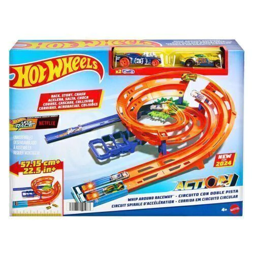 Hotwheels Action Circuito con Doble Pista HTK17 Mattel Compite con dos autos Hot Wheels en caminos paralelos, haz acrobacias y escapa de la zona de choque para ser el primero en terminar el Circuito Giro Veloz. Este clásico set de pista de la serie Let's Race de Netflix contiene toda la acción y diversión de las carreras y saltos. Además, incluye dos autos a escala 1:64. Prepárate para carreras cara a cara y acrobacias con el Circuito Giro Veloz El set se pliega por la mitad y tiene espacio para dos autos en el asa Carga los vehículos en los lanzadores y envíalos a toda velocidad a través de una salvaje pista Zona de saltos y choques antes de llegar a la meta Incluye dos coches Hot Wheels a escala 1:64 Los pequeños aumentarán su confianza y desafiarán sus habilidades Estupendo regalo para coleccionistas Llena de velocidad y adrenalina los hogares de niños y adultos.