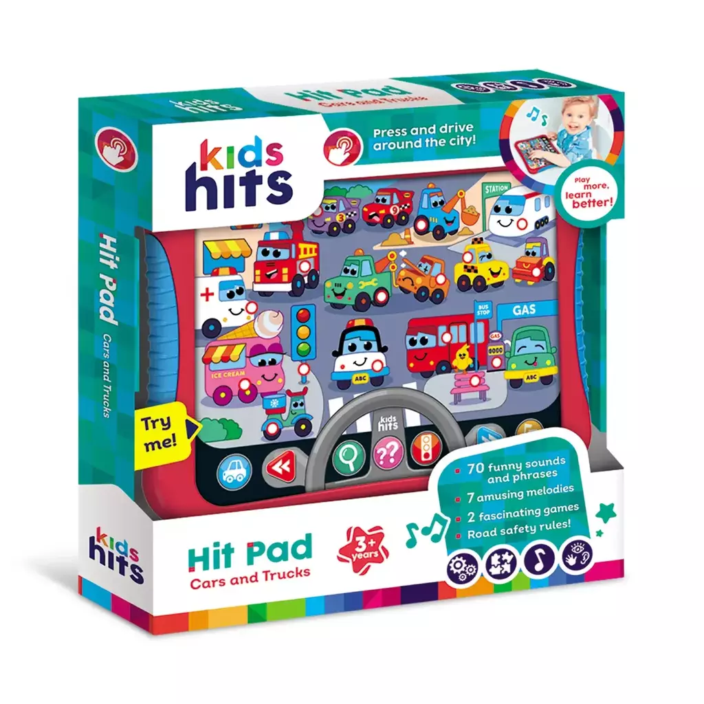 El Hit Pad Educativo Autos y Camiones invita a los chicos a explorar el mundo de los vehículos mientras aprenden sobre seguridad vial y reglas de tránsito. Con sonidos, melodías y juegos interactivos, manejar nunca fue tan divertido… ¡ni tan educativo!