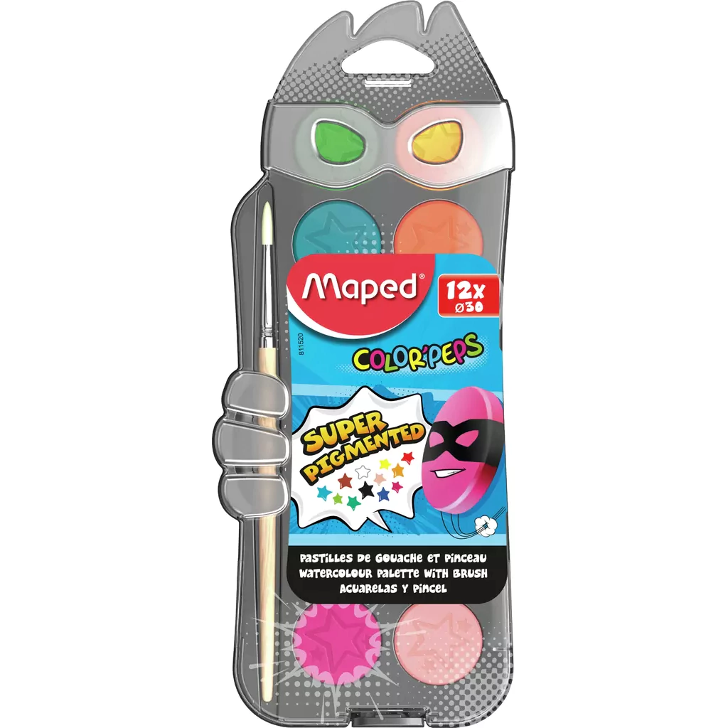 Las acuarelas Color´Peps Maped Superhéroes son la explosión de color que tus dibujos necesitan, son lavables, no tóxicas y aptas para todas las edades!