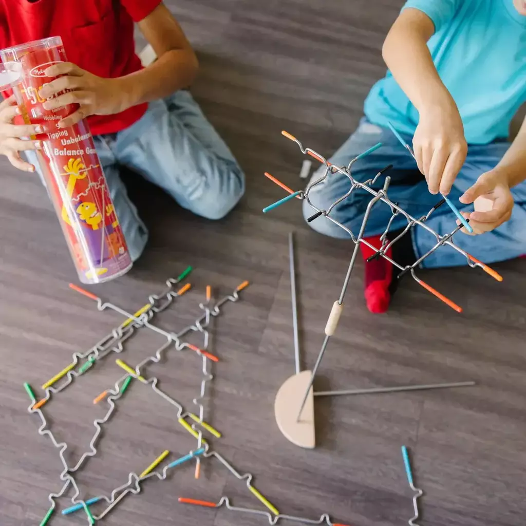 ¡Un juego familiar de equilibrio y pulso firme! ¡Prueba este juego de suspensión y te enganchará! Suspend incluye 24 piezas de alambre con puntas de goma y muescas para colgar de un soporte de mesa. ¿Parece fácil? ¡Intenta añadir otra pieza! Cada vez que añades una barra, el equilibrio cambia, la dificultad se incrementa y la increíble escultura en el aire se transforma. ¿Podrás añadir todas las piezas sin que se caiga? Este ingenioso juego para 1 a 4 jugadores pondrá a prueba tus nervios y tu pulso.