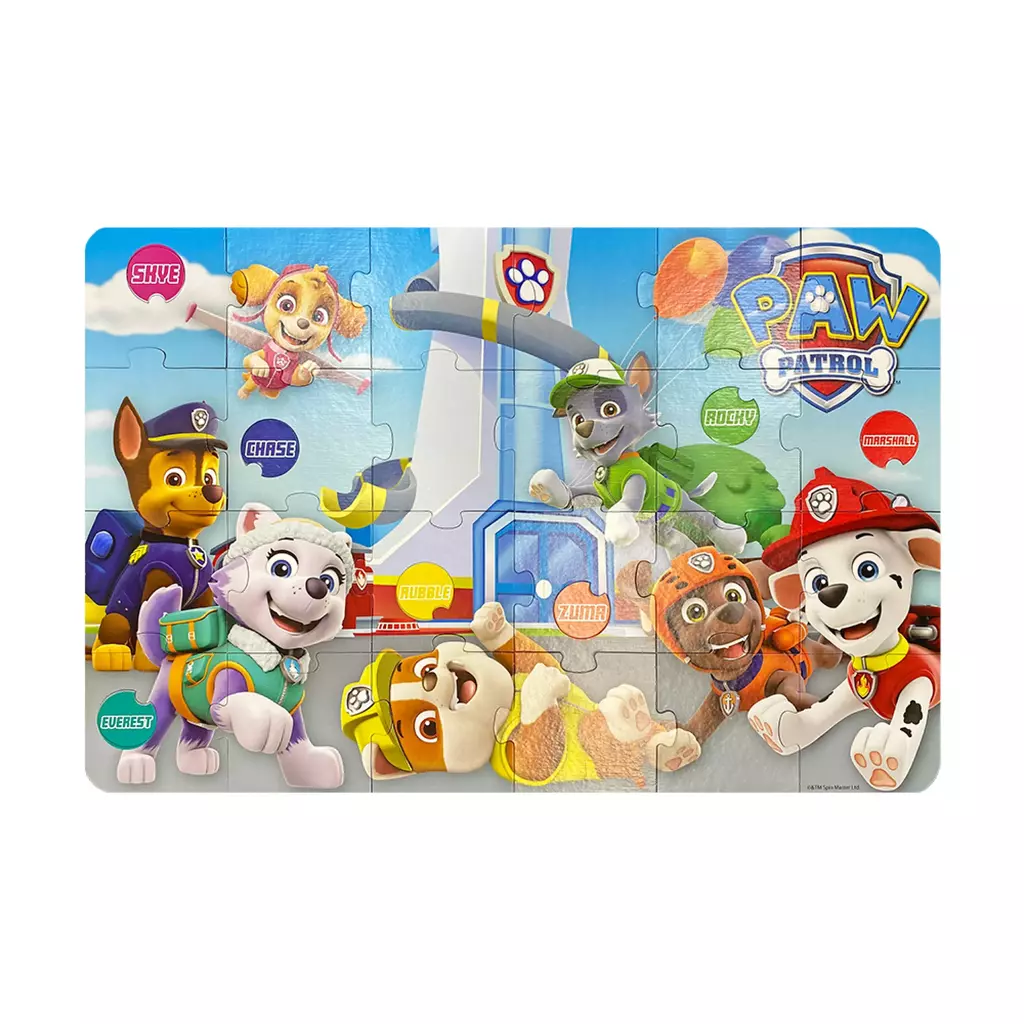 Mega puzzle de piso con 31 piezas y medidas de 96 x 84 cm, ideal para que los niños desarrollen ingenio y coordinación mientras recrean aventuras con sus cachorros favoritos.