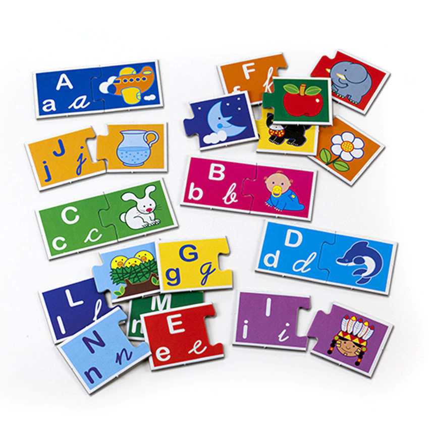 Una serie puzzles con letras e imágenes para asociar y unir. Una manera fácil y divertida de aprender las letras.