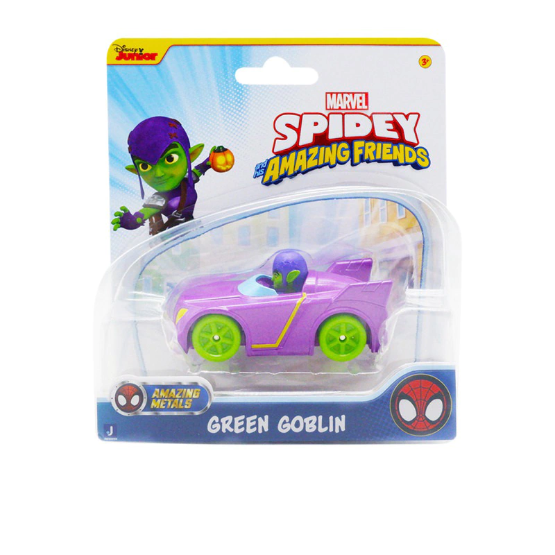 Presentamos el vehículo fundido a presión de Spidey and His Amazing Friends Amazing Metals que presenta el Spidey Web Crawler de la serie de televisión Disney Junior. Fabricado en metal fundido a presión y equipado con ruedas funcionales, este vehículo de 7,5 cm está listo para la aventura.