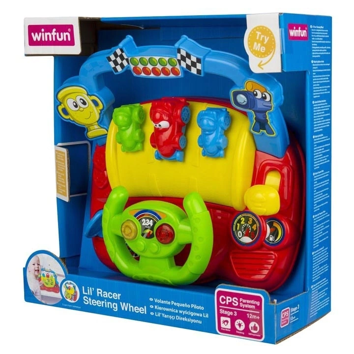 Botón de iluminación en el volante con melodías y efectos de sonido que animan.